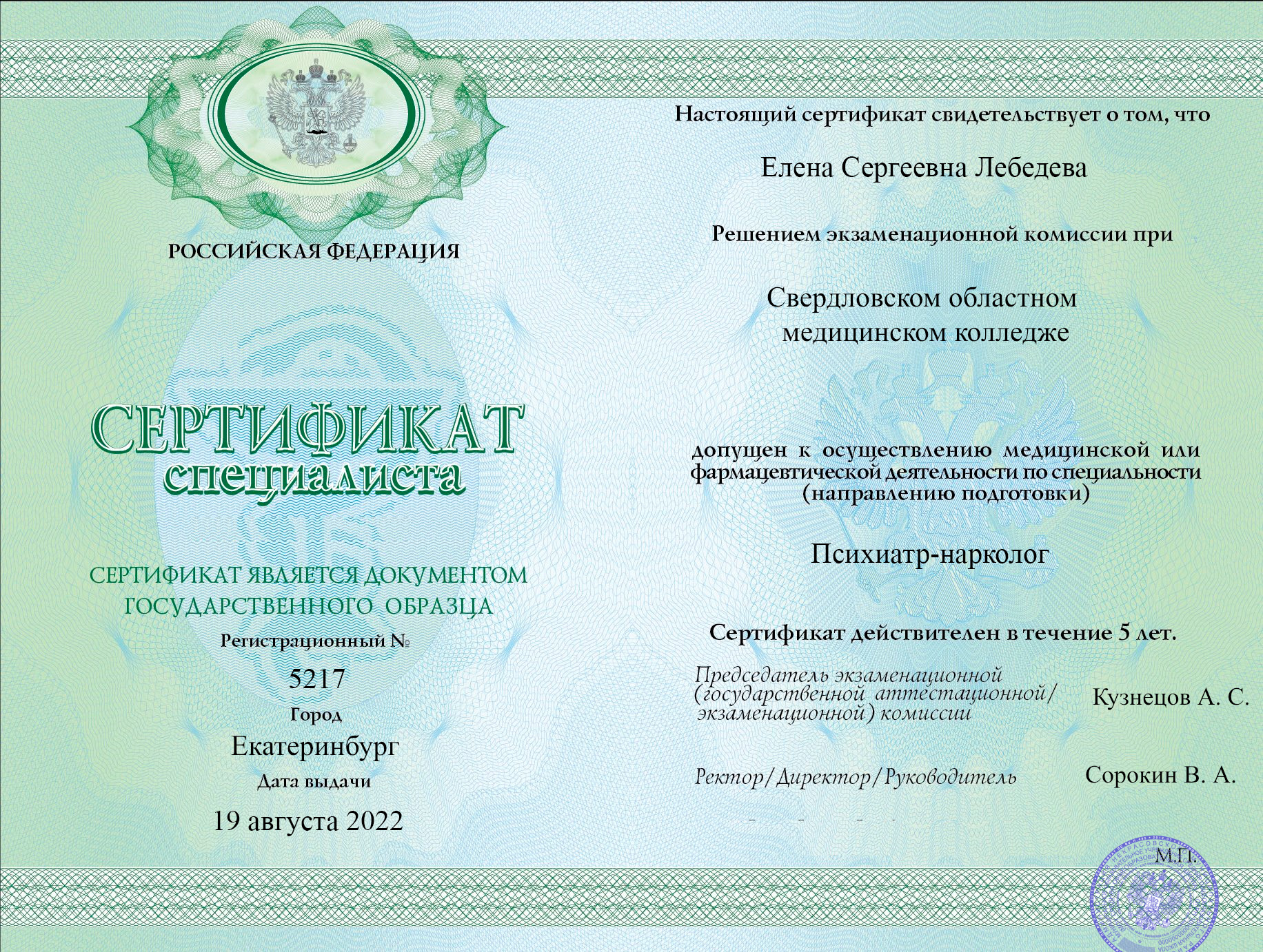 Елена Сергеевна Лебедева врач нарколог клиники доктора Стукаловой в Борисовке
